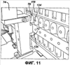 фиг.9 – перспективный вид спереди системы манипулирования кассетой с фиг.2, демонстрирующий каретку в положении выпуска жидкости из первой ячейки кассеты,