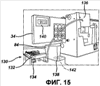Система считывания штрихкодов на кассете 34 и коробе 84 для отработанных кассет может быть заменена знаком радиочастотной идентификации, общеизвестным как радиометка. Система 130 радиочастотной идентификации показана на фиг.15. Она содержит контроллер 132, соединенный посредством однополюсного язычкового реле 134 на два направления с антенной 136 вкладывания кассеты, расположенной на каретке 32, и антенной 138 удаления кассеты, расположенной ниже короба 84 для отработанных кассет. Каждая кассета 34 несет на себе радиометку 140. Аналогичным образом каждый короб 84 для отработанных кассет несет на себе радиометку 142 для короба. Предпочтительно контроллер 132 содержит многофункциональный считывающий модуль S4100 компании Texas Instruments, а радиометки 140 и 142 содержат знак RI-101-112A компании Texas Instruments, и каждый из них может быть получен у компании Texas Instruments, Даллас, шт. Техас.
