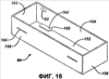 Заготовка 150 разделяется последовательностью линий сгиба (показаны пунктиром) и линиями прорезей на донную панель 152, боковые панели 154, торцевые панели 156 и верхние створки 158. Складывающиеся языки 160 отходят в стороны от боковых панелей 154. Дополнительные складывающиеся языки 162 отходят в стороны от торцевых панелей 156. Штрихкоды 82 отпечатаны на боковых панелях 154 в таком положении, в котором они должны быть видимы в верхнем внутреннем углу короба 84 для отработанных кассет после того, как он будет сложен с приданием ему формы, показанной на фиг.18. Пара фиксирующих языков 164 для верхних створок отходит от верхних створок 158 и входит в прорези 166 в противоположной верхней створке 158, когда короб 84 закрыт, и в прорези 168 на пересечении донной панели 152 и боковой панели 154, когда короб 84 открыт.