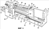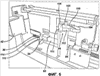 Установочный кулачок 96 контролирует вращение верхней панели 48. Он имеет в общем треугольную форму с обращенной наружу стороной 102, обращенной вперед стороной 104 и обращенной назад стороной 106. Как показано также на фиг.5, он установлен для вращения на направленную вверх ось 108. Пружина 110 отжимает установочный кулачок 96 в направлении против часовой стрелки, вводя обращенную наружу сторону 102 в контакт с упором 112. Перемещение каретки 32 по направлению внутрь позволяет выталкивающей лапке 98 проходить обращенную назад сторону 106 распределительного кулачка 96, позволяя таким образом распределительному кулачку 96 поворачиваться по часовой стрелке и позволяя выталкивающей лапке 98 проходить по нему, не вызывая поворота верхней панели 48. Однако перемещение каретки 32 наружу заставляет выталкивающую лапку 98 проходить по обращенной вперед стороне 104 распределительного кулачка 96. Во время такого движения контакт между обращенной наружу стороной 102 распределительного кулачка 96 и упором 112 препятствует вращению распределительного кулачка 96. Прохождение кулачка выталкивающей лапкой 98 заставляет его таким образом смещаться вбок в направлении боковой панели 46, поворачивая таким образом панель 48 вверх и освобождая кассету 34 из каретки 32.