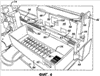 Каретка 32 содержит нижнюю панель 44, боковую панель 46 и верхнюю панель 48 наряду с небольшими вертикальными фланцами 50 и 52 на верхней и нижней панелях 48 и 44 соответственно, предназначенными для захвата кассеты 34. Нижняя, боковая и верхняя панели 44, 46 и 48 расходятся наружу на входе 54 каретки, чтобы способствовать установке кассеты 34. Две пружинных защелки 56 на фланцах 50 и 52 входят в зацепление с неровными поверхностями кассеты 34 для того, чтобы прочно установить кассету 34 внутри каретки 32.