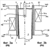 Фиг. 5а и 5b – вид, аналогичный фиг. 4, варианта работы индукторов со скользящим магнитным полем, когда они находятся в нижнем функциональном положении РВ.