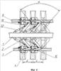 На фиг.1 изображен общий вид устройства для завинчивания и отвинчивания гаек скреплений рельсошпальной решетки; на фиг.2 – изображен вид по А-А фиг.1, на фиг.3 – вид по Б-Б фиг.1, на фиг.4 – изображено устройство, вид сверху.