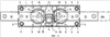 Внутри корпуса 1 на оси отверстия 6 расположено центральное зубчатое колесо 10, которое соединяется с сердечником цилиндра замка и вращается вместе с ним при повороте ключа (см. ниже). Центральное зубчатое колесо 10 входит в зацепление с двумя боковыми зубчатыми колесами 13, которые установлены на осях 5 корпуса 1. На каждом зубчатом колесе 13 эксцентрично закреплен палец 14, который входит в паз 17 расположенного внутри корпуса 1 конца 16 ригеля (засова) 15. Ригели 15 проходят через выполненные в боковых стенках 3 корпуса 1 окна 3а и в рабочем положении перемещаются в горизонтальном направлении, а их пазы 17 расположены вертикально. При повороте центрального зубчатого колеса 10 и находящихся в зацеплении с ним боковых зубчатых колес 13 закрепленные на боковых зубчатых колесах пальцы 14, расположенные в пазах 17, перемещают ригели 15 из положения, показанного на фиг.1-4 сплошными линиями, наружу в положение, показанное только для одного ригеля 15а на фиг.4 штрихпунктирной линией.