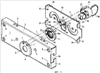 Корпус предлагаемого в изобретении замка имеет переднюю стенку 1 и отогнутые к ней под прямым углом верхнюю и нижнюю стенки 2 и боковые стенки 3. У замка, установленного на шторную, качающуюся или секционную дверь с помощью винтов, проходящих через отверстия 4, передняя стенка корпуса расположена на некотором расстоянии от плоскости двери. Внутри корпуса 1 замка расположены две оси 5 зубчатых колес внутреннего механизма замка. В отверстие 6 входит сердечник 26 цилиндра замка, а в отверстия 7 вставляется отвертка, которой ввертывают или вывертывают винты, которыми изнутри к крышке корпуса крепится цилиндр замка, как это более подробно описано ниже. На лицевой стороне передней стенки корпуса выполнен цилиндрический выступ 8, назначение которого также подробно описано ниже. Верхняя и нижняя стенки 2 корпуса имеют лапки 9, предназначенные для более подробного рассмотренного ниже крепления к корпусу крышки замка.