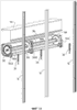 На фиг.13 представлены также соединительные детали 124А, 124В и 124С, которые непосредственно закреплены соответственно на подшипниках 118, 119 и 120. Короб 114 может быть установлен на подшипниках посредством любых подходящих для этой цели средств. Для каждой из соединительных деталей представлены также рельс 12 и кулиса 26, аналогичные тем, которые были показаны на предыдущих фигурах.