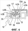 Указанная пластинка 26В имеет на своей передней грани гибкую лапку 42, заканчивающуюся внизу конечным участком, на задней грани которого имеется выступ 44, а на передней грани – тяга 46. В верхней части выступа 44 предусмотрен наклонный участок.