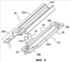 Полугибкая пластинка 26В соединена в зоне, снабженной ребрами жесткости 48, с верхним участком 26А кулисы, в силу чего гибкость указанной полугибкой пластинки 26В будет касаться главным образом терминального участка, снабженного выступом 44.