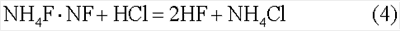 Щавелевая кислота СООН-СООН (двухкислотная) – органический растворитель минеральных соединений поддерживает значение водородного показателя (кислотность) pH отработанного раствора ниже 3 ед., что способствует лучшему растворению и выносу минеральных соединений, и одновременно предотвращает выпадение в осадок продуктов реакции (кремнефтористых соединений, водорастворимых соединений железа). ПАВ, преимущественно неионогенные поверхностно-активные вещества (например, неонол, нефтенол и др.), применяется для замедления и равномерного растворения минеральных соединений по всему объему, при этом он одновременно является ингибитором коррозии. Изопропиловый спирт (СН3)2СНОН в качестве моющего агента, способствует очистке обрабатываемых зон пласта от отложения нефтепродуктов (парафинов, асфальтенов, масел и т.д.) и улучшает вынос продуктов реакции из скважины, что повышает эффективность процесса растворения минеральных соединений в целом. По сравнению с другими растворителями (АСПО, метиловый спирт, ароматические растворители и т.д.) изопропиловый спирт не летуч (температура кипения 82,2°С), менее агрессивен и токсичен, хорошо растворим в воде и водных растворах, а также обеспечивает раствору низкую температуру замерзания. Персульфат аммония в качестве окислителя-катализатора активизирует химические реакции и повышает эффективность процесса очистки, хорошо работает в кислой среде без образования осадков. При приготовлении рабочего раствора композиции для образования плавиковой кислоты необходимо определенное соотношение количества аммония фтористого кислого и соляной кислоты согласно реакции (4). В таблице 1 приведены расчеты необходимого объема 24% соляной кислоты (НСl) и соли аммония фтористого кислого (NH4F·HF) для получения расчетного количества плавиковой кислоты (НF). В таблице 2 приведены варианты А, Б, В, Г составов композиции.
