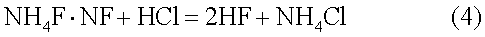 Так же, как известное решение (прототип), предлагаемая композиция представляет собой хорошо фильтрующуюся в пласт однородную систему, позволяющую активным компонентам проникать на значительные расстояния, увеличивая глубину обработки. В отличие от прототипа эта задача решается в изобретении путем использования компонентов экологически менее токсичных и агрессивных, удобных при транспортировке и приготовлении, что упрощает и улучшает условия использования композиции на удаленных объектах и создает безопасные условия труда, а именно: а) вместо водного раствора плавиковой кислоты использован экологически безопасный порошкообразный аммоний фтористый кислый, который обеспечивает получение той же плавиковой кислоты при смешивании с соляной кислотой, т.е. непосредственно в рабочем растворе; б) вместо раствора уксусной кислоты использована порошкообразная щавелевая кислота, которая менее токсична, более эффективна при меньшем расходе, при этом она обеспечивает композиции при отработке основных растворителей низкое значение водородного показателя pH, повышает растворимость минеральных соединений и предотвращает выпадение в осадок продуктов реакции (кремнефтористых соединений, водорастворимых соединений железа); в) в качестве спритового очистителя от отложений нефтепродуктов использован менее токсичный изопропиловый спирт, обладающий хорошими моющими и очищающими свойствами в основном органических отложений; г) введение в композицию персульфата аммония в качестве окислителя и катализатора некоторых химических реакций повышает эффективность состава, не ухудшая при этом его экологические качества. Исходные компоненты композиции Соляная кислота 24% концентрации, т.е. 24% водный раствор хлористого водорода НСl (преимущественно ингибированная), является основным растворителем соединений поливалентных металлов (оксидов и солей). Примеры реакций (1-3): Массовое содержание соляной кислоты в составе рассчитывается с учетом расхода на реакцию с аммонием фтористым кислым для получения плавиковой кислоты в процессе приготовлении композиции по реакции (4): При этом массовое содержание активного реагента НСl в готовом составе должно быть в пределах 5-12% в зависимости от условия применения. Аммоний фтористый кислый NH4F·HF используется в качестве исходного материала для получения плавиковой кислоты HF. Водный раствор аммония фтористого кислого вступает в реакцию с соляной кислотой с образованием фтористого водорода согласно реакции (4). Плавиковая кислота является в основном растворителем оксида кремния SiO2 по реакции (5): Аммоний фтористый кислый легко реагирует с соляной кислотой с образованием плавиковой кислоты. Концентрация аммония фтористого кислого в композиции составляет 0,5-5,0%, при этом содержание образующегося активного реагента фтористого водорода HF будет в пределах 0,35-3,5%. В соответствии с рецептурой 24% раствор соляной кислоты разбавляют расчетным количеством воды, после чего постепенно добавляют аммоний фтористый кислый и размешивают до полного растворения и завершения реакции (4), затем последовательно при перемешивании добавляют щавелевую кислоту, персульфат аммоний, ПАВ, изопропиловый спирт. Перемешивают до получения однородного гомогенного раствора.