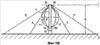 Двигатель согласно примеру, показанному на фиг.1b, более известный под названием ветряного двигателя Даррье, содержит две (или три) лопасти 1, 2, закрепленные своими концами 1а, 2а и 1b, 2b соответственно в единой нижней точке и единой верхней точке вертикальной мачты или башни 4. Образованный таким образом ротор является параболическим, однако он может быть также цилиндрическим или иметь форму усеченного конуса.