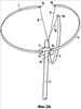 На фиг.2b ветряной двигатель, показанный на фиг.2а, показан в двухмерной проекции. Поэтому третья лопасть 3 не видна, что упрощает чертеж и облегчает его понимание.