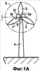 Фиг.1а, 1b изображают схематичный вид двух ветряных двигателей из предшествующего уровня техники.