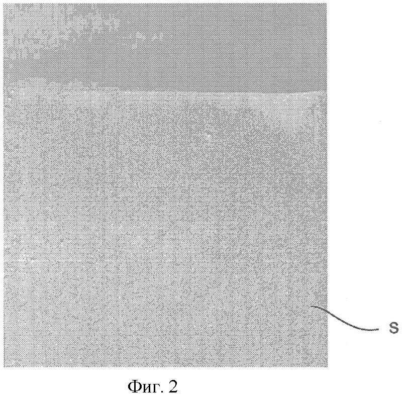 На фиг.2 при виде сверху изображена фрагмент стальной полосы, покрытой поясненным выше образом. Хорошо видно плотное на всей поверхности и равномерное нанесение покрытия.