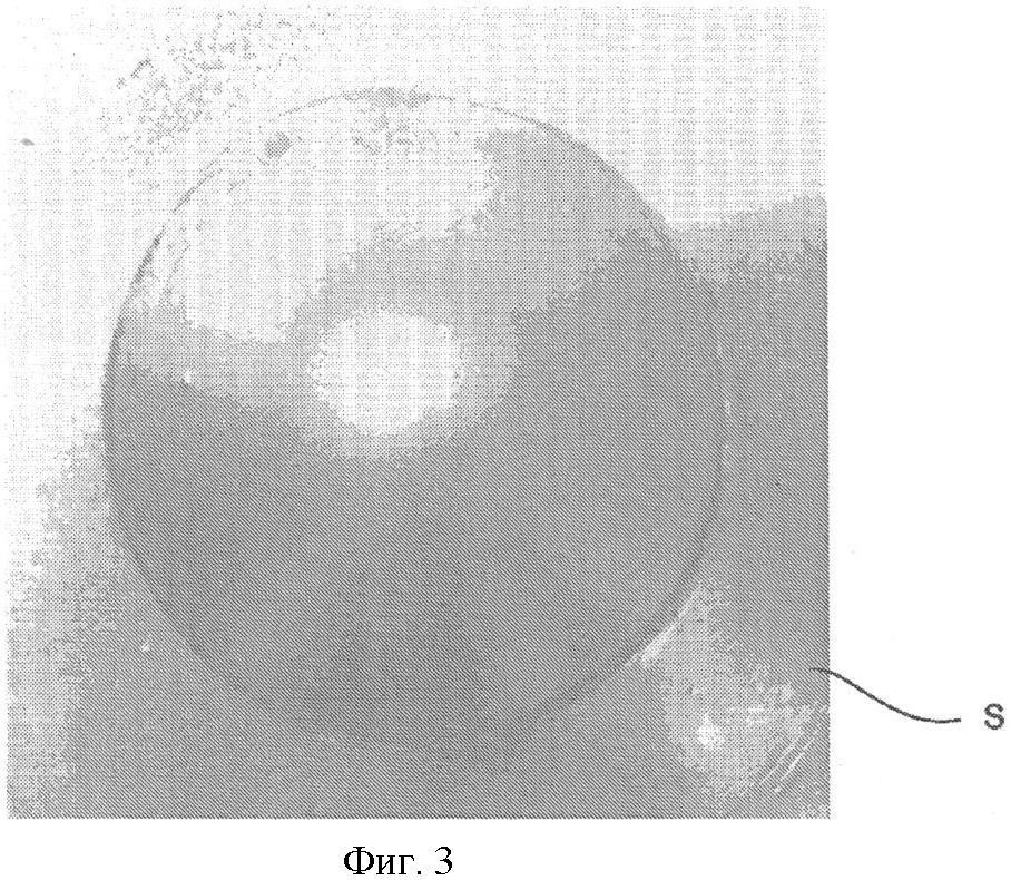 На фиг.3 изображен результат проведенного на стальной полосе S склероскопического испытания. Он подтверждает хорошее сцепление со стальной полосой S структуры покрытия, образованной AlFe-, AlFeSi- и AlSi-слоями. Не видны отслаивания или сопоставимые повреждения.