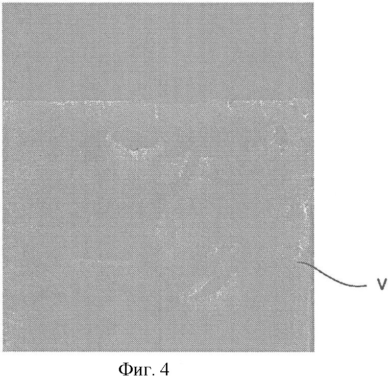 В противоположность этому на фиг.4 для сравнения при виде сверху изображена стальная полоса V, легированная точно так же, как и стальная полоса S. За исключением этапа нанесения покрытия методом PVD, она была обработана таким же образом, как и стальная полоса S. При этом на фиг.4 заметно, однако, что стальная полоса V по окончании процесса обработки почти не имеет покрытия.