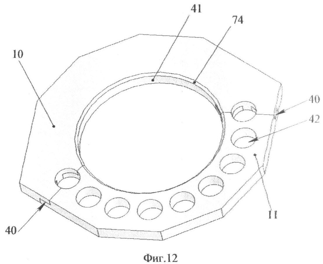 На фиг.11 – в изометрии плоский вариант поршня с УСЭ без выступов.
