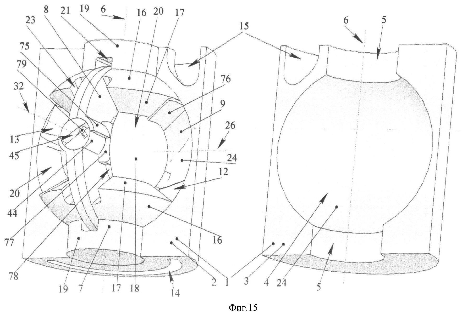 На фиг.14 – в изометрии крупным планом УСЭ с фиг.1.