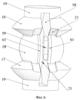 На фиг.21 – в изометрии в разобранном виде узел варианта ОРМ по фиг.20, состоящий из разделителя, поршня и заслонок.
