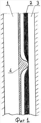 1. Скважинный перистальтический насос, включающий эластичный трубопровод и нажимной элемент, взаимодействующий с наружной поверхностью эластичного трубопровода с усилием, достаточным для возникновения перистальтического эффекта, отличающийся тем, что эластичный трубопровод размещен в полости, установленной в скважине обоймы так, что часть его выходит за габариты обоймы, а нажимной элемент выполнен в виде объемного тела с цилиндрической контактной поверхностью, укрепленного с возможностью возвратно-поступательного перемещения вдоль эластичного трубопровода и взаимодействия с выступающей из обоймы частью его поверхности, при этом размеры объемного тела и обоймы выбраны из условия заполнения полости обоймы эластичным трубопроводом в зоне взаимодействия объемного тела и эластичного трубопровода.