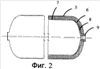 На Фиг.2 показан композитный баллон высокого давления (ВД), содержащий внешнюю силовую оболочку 5 из композиционного материала и герметичную металлическую внутреннюю оболочку – лейнер 6. Внешняя силовая оболочка 5 образована намоткой на поверхность лейнера 6 прочного полимерного волокна, пропитанного смолой. Внешняя силовая пластиковая оболочка 5 может быть выполнена из любого известного полимерного материала, применяемого с этой целью, например из жгута Армос.