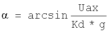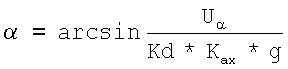 где U , U – величины сигналов [В], соответствующие измеряемому углу или и равные произведению напряжения снимаемого с двухкоординатного измерителя ускорения на коэффициент Kd диапазона измеряемых углов и вычисляемый по формуле: