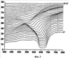 В результате получаются фотонные кристаллы со структурой инвертированного опала, электронно-микроскопическое изображение которых показано на фиг.2. Как видно из этих изображений все инвертированные фотонные кристаллы, имеют упорядоченную микроструктуру. В поверхностном слое полученных образцов присутствуют такие дефекты как вакансии и их скопления с концентрацией порядка одного дефекта на 2 мкм2. Все инвертированные фотонные кристаллы имели фотонные запрещенные зоны в видимом и ИК-диапазоне спектра. В качестве примера на фиг.11 приведены спектры пропускания инвертированного фотонного кристалла на основе силиката магния Mg2SiO4, снятые при различных углах падения света от 0° (нижний спектр) до 67.5° (верхний спектр) с шагом 2.5°. Спектры смещены в вертикальном направлении для наглядности. Наличие смещения глубины провала в спектрах пропускания характерно для инвертированных фотонных кристаллов.