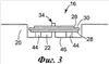 Как показано на Фиг.3, конденсатор 16 в показанном примере осуществления изобретения состоит из двух обкладок 26, 28 и диэлектрика, расположенного между ними. Как будет описано более детально ниже, одна из обкладок 28 может быть больше другой обкладки 26. Кроме того, диэлектрик 30 может быть больше обеих обкладок. В показанном на Фиг.3 примере конденсатор 16 имеет гнездо или отверстие (которое не видно на чертеже, отверстие 32 показано на Фиг.6-9), которое предназначено для размещения штыря 34. Штырь 34 в показанном примере выполнен на контактном держателе, описанном более детально ниже, и предназначен для размещения конденсатора 16 на контактном держателе 20. Контактный держатель 20 также имеет в показанном примере углубление 22 для размещения конденсатора 16. Кроме того, в показанном примере есть дополнительные выступающие части, выполненные в форме перегородок 44, для того чтобы отделить конденсатор 16 от стенки 46 контактного держателя. В качестве альтернативы, одна или более перегородок может быть заменена на один или более контактные столбики, штыри или подобные выступы, которые служат разделителями.