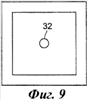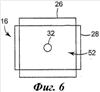 На других чертежах показаны два примера выполнения конденсатора 16. В первом примере, показанном на Фиг.6 и 7, конденсатор 16 состоит из двух обкладок 28, 26, которые расположены в виде “креста”. Другими словами, в показном примере обкладки 26, 28 выполнены прямоугольными и более длинные стороны каждой обкладки расположены по существу под прямым углом по отношению друг к другу. Таким образом, первая обкладка 26 выступает за край второй обкладки 28 в направлении вверх и вниз согласно Фиг.6, и вторая обкладка 28 выступает за край первой обкладки 26 в направлении влево и вправо. Площадь совмещения обеих обкладок, обозначенная цифрой 52, определяет эффективный конденсатор. Как показано на Фиг.7, диэлектрик 30 в показанном примере немного больше обкладки 28. На Фиг.6-9 показано отверстие 32 (в показанном примере приблизительно в центре) конденсатора 16, с которым взаимодействует штырь 34 (показан на Фиг.3).