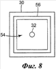 В примере, показанном на Фиг.8, первая обкладка 54 в двух перпендикулярных направлениях меньше второй обкладки 56 так, что эффективный конденсатор, т.е. там, где обкладки совмещены, образован одной меньшей обкладкой 54, потому что все стороны в показанном примере по существу параллельные. В примере, показанном на Фиг.8 и 9, диэлектрик 30 больше как меньшей обкладки 54, так и большей обкладки 56. В показанном примере обе обкладки 54 и 56 и диэлектрик 30 имеют по существу квадратную форму.