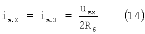 Аналогичные выводы о погрешности преобразования uвх на переменном токе можно сделать в результате анализа схемы фиг.3, для которой при R6»rэ2 rэ3 переменные составляющие выходных токов