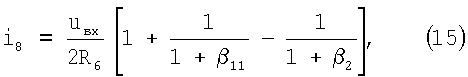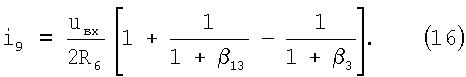 Из (4) и (5) следует, что существенная (но идентичная) деградация транзисторов 11 и 2, 13 и 3 не приводит к дополнительной статической ошибке I преобразования uвх в токи I8 и I9