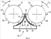 Благодаря такому расположению ремни 11 и 12 соприкасаются друг с другом на отрезке их длины, проходящем от шкива 20 к шкиву 18 через шкивы 14-17.