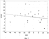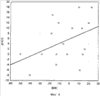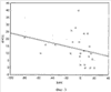 Состояние гемодинамики оценивали при проведении регионарной анестезии (РА) с клофелином у 90 пациентов и РА без клофелина у 27 пациентов, для чего определяли величины уменьшения среднего артериального давления ( САД) и уменьшения частоты сердечных сокращений ( ЧСС). Экспериментально было установлено, что снижение САД и ЧСС при проведении РА с клофелином оказалось статистически значимо большим, чем без клофелина. При проведении РА с клофелином обнаруживается сильная обратная связь между САД и ВИК (R=-0,66 при р=0,00001) (фиг.1) и умеренная обратная между ЧСС и ВИК (R=-0,53 при р=0,007) (фиг.3), и отсутствие таковой – без клофелина (для САД и ВИК R=-0,18 при р=0,34, а для ЧСС и ВИК R=0,41 при р=0,08) (фиг.2, фиг.4), где