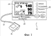 Фиг.1 показывает устройство 10 измерения кровяного давления. Это устройство 10 измерения кровяного давления содержит основной блок в корпусе. Манжета 16 прикрепляется к корпусу посредством трубки 17. Эта манжета приспособлена для наложения на верхнюю часть руки пользователя. Блок измерения кровяного давления работает известным в технике образом, в частности путем надувания манжеты и медленного уменьшения давления в манжете при измерении давления в манжете. На основе сигналов давления давление крови определяется осциллометрическим способом. Устройство снабжено дисплеем 14 для выдачи множества результатов измеренных данных и инструкций пользователю. Далее, устройство снабжено рабочими кнопками, такими как кнопка 18 памяти для отображения запомненных результатов (см. также фиг.3).