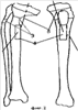 Известен также способ лечения косорукости при экзостозной хондродисплазии у детей путем остеотомии лучевой и локтевой костей, наложения аппарата внешней фиксации с последующим исправлением оси предплечья, дозированном удлинении костей предплечья до заданной длины. На лучевой кости производят кортикотомию на вершине искривления, а на локтевой кости – через экзостоз, сохраняя его (патент РФ 2073493, кл. A61B 17/56. Опубл. 20.02.1997 г.).