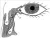 – иссекают нижнюю половину слезного мясца.