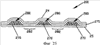 Дополнительная поперечная растяжимость каркаса 100 может быть обеспечена различными способами. Например, материал или материалы, из которых сделан каркас 100, могут быть плиссированы любым из известных способов. В качестве альтернативы, весь каркас или его часть может быть сделана из сформированного тонколистового материала или сформированных слоистых тонколистовых материалов, подобных тем, которые описаны в патенте US 5518801, выданном 21 мая 1996. Пример фрагмента 300 такого сформированного тонколистового материала 305 показан на фиг.17. Этот сформированный тонколистовой материал 305 включает четкие растяжимые в поперечном направлении области 310, в которых первоначальный материал был изменен при помощи тиснения или другого способа деформации, чтобы создать структуру в общем случае продольно ориентированных переменных гребней 312 и впадин 314 в тонколистовом материале. Сформированный тонколистовой материал 305 также включает растяжимые в поперечном направлении недеформированные области 316, расположенные между растяжимыми в поперечном направлении деформированными областями 310.