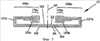Крепежные элементы 120, показанные на фиг.5 и фиг.6, выступают в поперечном направлении наружу от язычков 108 каркаса в виде лент. Такие ленты могут быть покрыты адгезивным веществом. Подходящие адгезивные ленты производятся корпорацией 3М St. Paul, Миннесота, США, под обозначением XMF99121. Для того чтобы предотвратить их преждевременное прилипание к поверхности, такие адгезивные ленточные крепежные элементы обычно сгибаются, чтобы предотвратить контакт с адгезивным веществом и последующее разгибание для контакта адгезивного вещества при использовании. Например, на фиг.3 оба крепежных элемента 120 показаны сложенными, в то время как на фиг.5, фиг.6 и фиг.7 левый крепежный элемент 120а показан еще согнутым, а правый крепежный элемент 120b показан разогнутым и, таким образом, сконфигурированным для использования.