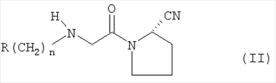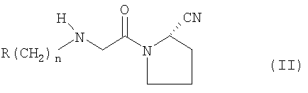 Другой пример N-(замещенный глицил)-2-цианопирролидинов по настоящему изобретению включает соединения формулы (II)