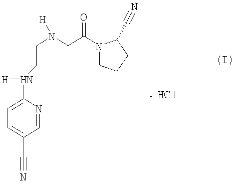 Пример такого соединение включает моногидрохлорид [S]-1-[2-(5-циано-2-пиридиниламино)этиламино]ацетил-2-карбонитрила формулы (I)