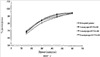 Среднее время распадаемости таблеток было равно 6 минутам. Профили растворимости белых таблеток, покрытых оболочкой, по 300 мг ZD6474 в 0.5% растворе натрия лаурилсульфата при 37°С перед и после хранения (во флаконах из ГДПЭ) при повышенной температуре и влажности показаны на фиг.2.