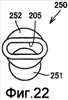 На фиг.21 показан вид в продольном разрезе мундштука ингалятора, раскрытого в упомянутом выше патентном документе 1, и на фиг.22 показан вид спереди, со стороны стрелки XXII, обозначенной на фиг.21. Как показано на фиг.21 и фиг.22, мундштук 250 ингалятора, раскрытый в упомянутом выше патентном документе 1, включает в себя участок 252 ингаляции, имеющий отверстия на противоположных концах, и участок 251 ввода, имеющий отверстие на одном конце и связанный с участком генерирования аэрозоля на другом конце, и выполнен таким образом, что участок 251 ввода вставлен в участок 252 ингаляции через отверстие таким образом, что часть отверстия на одном конце участка 252 ингаляции открыта наружу.