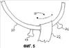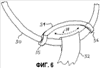 На фиг.6 показан другой альтернативный вариант осуществления. Здесь подбородочный ремешок 32 соединен с ушной петлей 30 тем же способом, описанным выше на фиг.1 и 2. Перемычка 34 также имеет ушную петлю 30. Перемычка 34 может быть выполнена за одно целое с ушной петлей 30 или прочно присоединена к ушной петле 30. В этом варианте осуществления соединение подбородочного ремешка 32 с ушной петлей 30 находится между основанием 35, 36 перемычки 34 для предохранения подбородочного ремешка 32 от перемещения за основания 35, 36 перемычки 34. Подбородочный ремешок 32 может свободно перемещаться по ушной петле по ограниченной траектории 38, для предоставления подбородочному ремешку 32 некоторой свободы перемещения, тогда как перемычка 34 удерживает его на месте в заданной области положения относительно ушной петли 30.