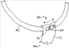 На фиг.7 показан еще один альтернативный вариант осуществления. Здесь подбородочный ремешок 42 соединен с ушной петлей 40 тем же способом, описанным выше по фиг.1 и 2. Имеется кнопка 44, выступающая вперед из ушной петли 40, и дополнительная прорезь 46 в подбородочном ремешке 42, которая взаимодействует с кнопкой 44. Прорезь 46 имеет такие пространственные размеры для взаимодействия с кнопкой 44, что, когда прорезь 46 помещена над кнопкой 44, подбородочный ремешок 42 может свободно перемещаться по ограниченной траектории 48 ушной петли 40, тогда как подбородочный ремешок 42 также удерживается на месте в заданной области положения, относительно ушной петли 40. Ограниченная траектория 48 определена боковым размером прорези 46.
