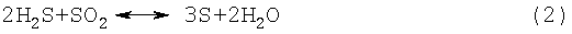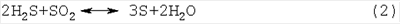 Непрореагировавший сероводород и образовавшийся диоксид серы, содержащиеся в газообразных продуктах сгорания, могут быть вовлечены в реакцию Клауса, где они реагируют с образованием элементарной серы в соответствии со следующим уравнением