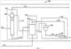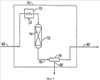 Теперь рассмотрим принципиальную схему стадии 10 извлечения серы процесса Клауса согласно изобретению, представленную на фиг.1. Стадия извлечения серы процесса Клауса включает в себя термический блок 12 (или стадия сгорания) и каталитический блок 14. Поток кислого газа и газовый поток, содержащий кислород, вводят в печь 16, соответственно, по линиям 18 и 20. Печь 16 предназначена для частичного сгорания H2S в потоке кислого газа с образованием SO2. Образовавшийся поток газов сгорания проходит из печи 16 по линии 22 в теплообменник 24, где этот поток охлаждается за счет косвенного теплообмена с водой. Вода подается в теплообменник 24 по линии 26, и пар отводится из теплообменника 24 по линии 28.