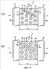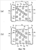 На Фиг.7В представлено расположение форсунок устройства для охлаждения листа толстолистовой стали, показанного на фиг.7А: (а) иллюстрирует расположение форсунок охлаждающего устройства с верхней боковой стороны, (b) иллюстрирует расположение форсунок охлаждающего устройства с нижней боковой стороны.