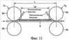 На Фиг.11 показаны охлаждаемые области и расположение форсунок в типовом устройстве для охлаждения стального листа, показанного на фиг.10.
