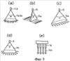 На Фиг.5 представлены виды различных типов распыляющих форсунок, используемых в устройстве для охлаждения листа толстолистовой стали, в соответствии с настоящим изобретением: (а) иллюстрирует распыляющую форсунку с факелом конической формы, (b) иллюстрирует распыляющую форсунку с плоским факелом, (с) иллюстрирует распыляющую форсунку с овальным факелом, (d) иллюстрирует распыляющую форсунку с факелом вытянутой формы, (е) иллюстрирует распыляющую форсунку с множеством отверстий и факелом в виде колонн.